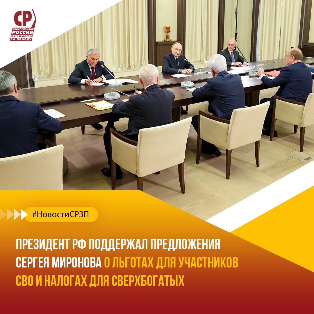 Президент РФ поддержал предложения Сергея Миронова о льготах для участников СВО и налогах для сверхбогатых