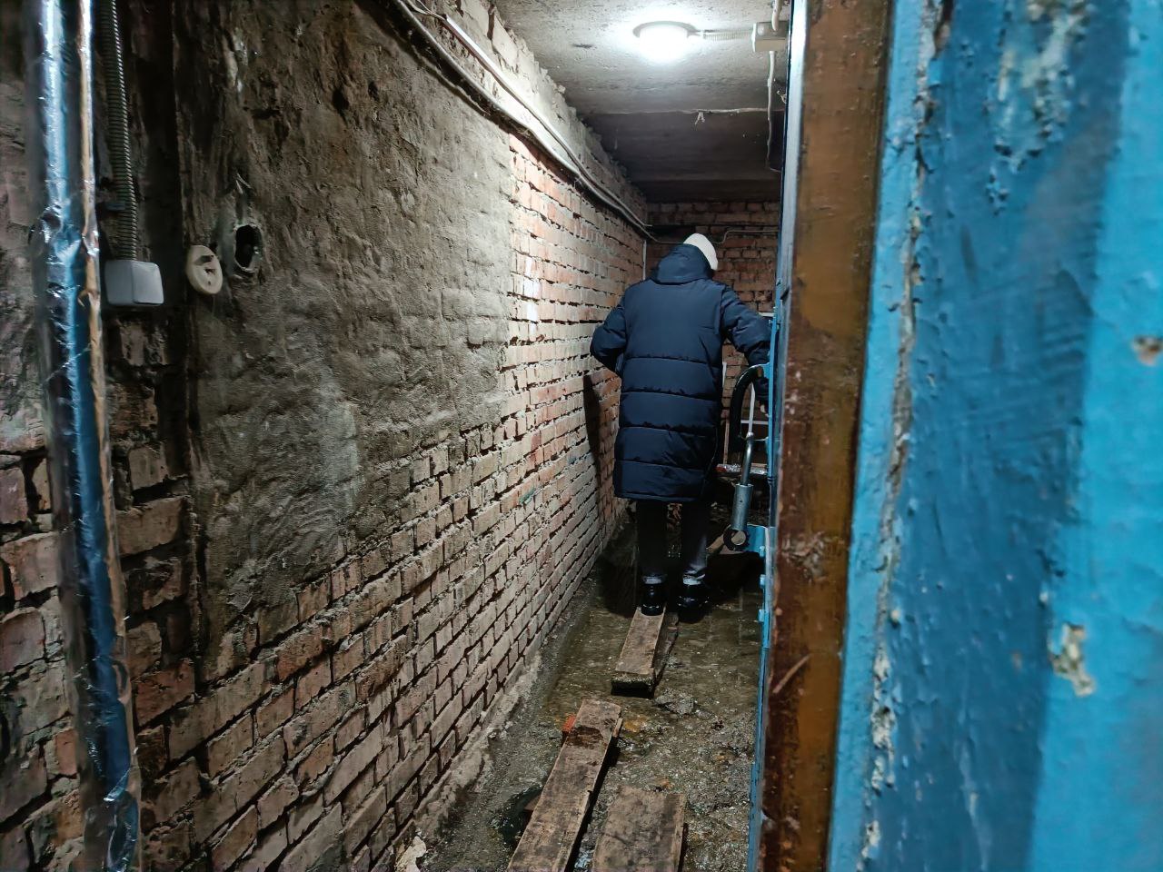 Но вернёмся к нашим героям. После обмена дружескими любезностями Храбсков повёл Доронина по злачно-зловонным местам с фекальными ручьями. И за ними буквально гуськом отправились чиновники (фото №5). Экскурсия заняла примерно 40 минут. Финальный пункт, больше похожий на контрольный выстрел, решили сделать в затопленном фекалиями подвале дома №48 (фото №6). Вонь там стояла соответствующая. А люди с этой вонью живут много лет! Но удручает в этой ситуации другой факт – абсолютное бездействие городских чиновников.